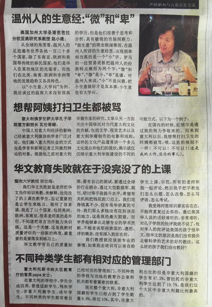 华文教育研究所的多位老师济济一堂,海内外学者畅所欲言,从多学科出发,全方位、多层次地挖掘和提炼海外温州人社会变迁、华文教育和语言文化传承的发展规律。《欧华联合时报》摘录了其中多位专家的观点: