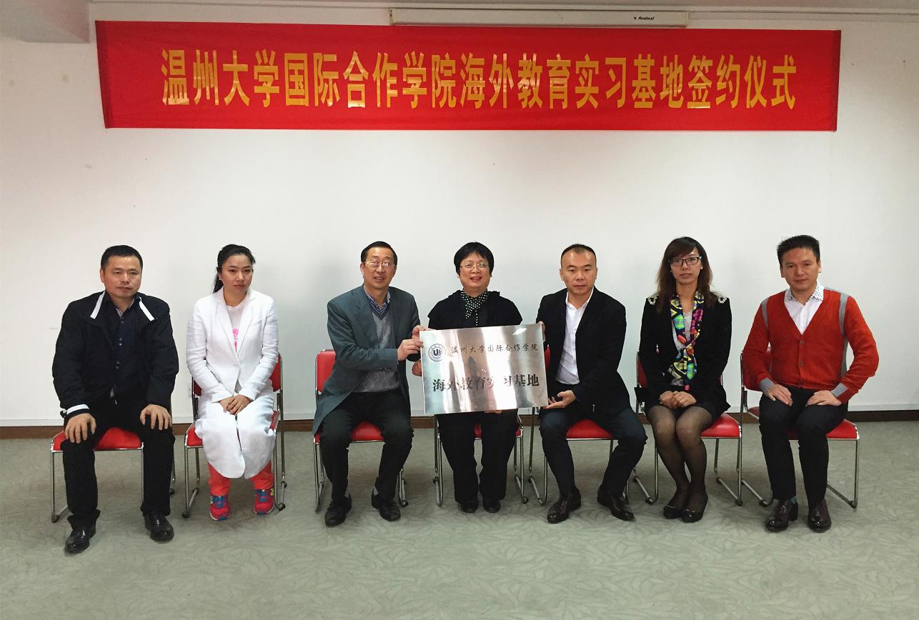 国际合作学院与阿联酋温州商会共建海外教育实习基地签约仪式在学院路校区科技合作大楼601会议室举行。温州市外侨办副主任许捷、国际合作学院院长严晓鹏、办公室主任包含丽老师、阿联酋温州商会会长张俊毅共同出席签约仪式。