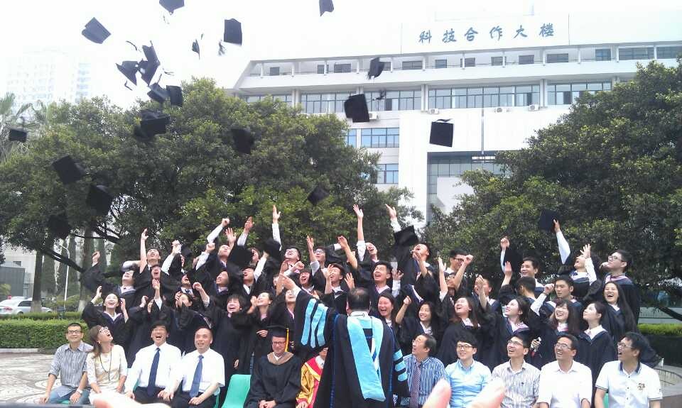 图为毕业生与两校校长合影