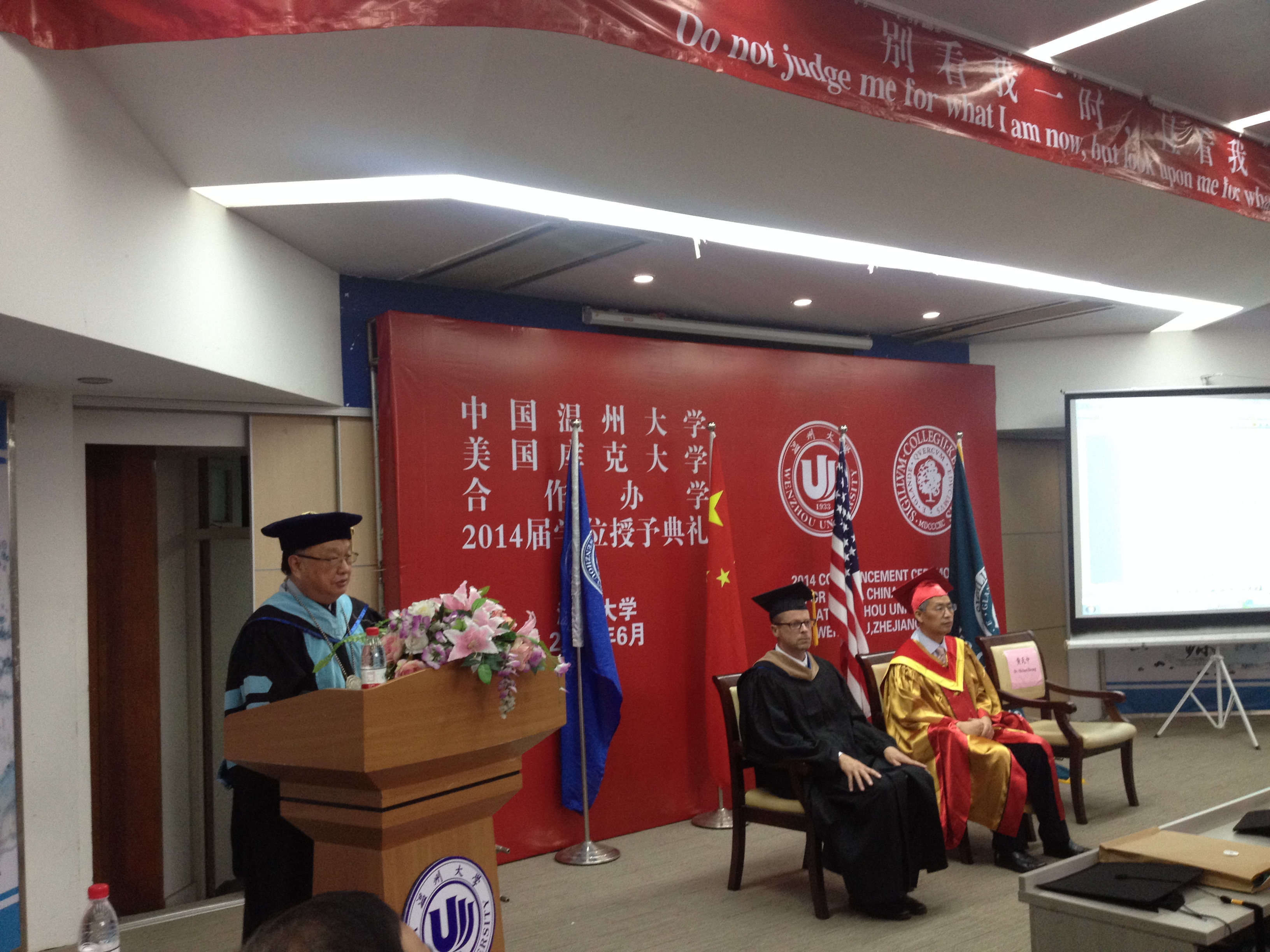 副校长黄少铭教授、库克大学副校长马克·皮特里博士(Mr. Mark Petrie )、库克大学中国总校区校长黄天中博士(Dr. Michael Hwang)出席,库克项目厦门办公室人员、国际合作学院领导、教师代表、部分毕业生亲友参加。典礼由国际合作学院院长严晓鹏博士主持。