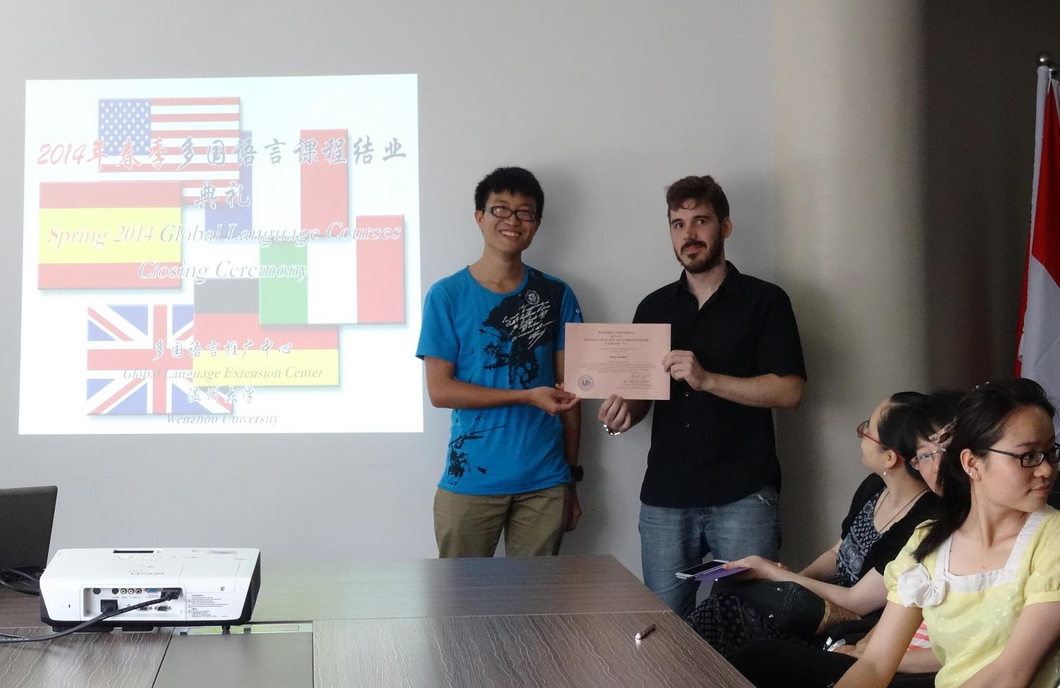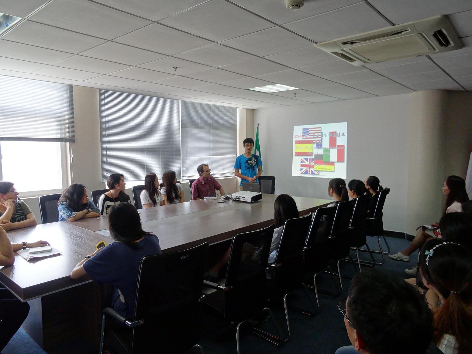 多国语言推广中心在国际合作学院专家楼会议室举行了2014年春季多国语言课程结业典礼。本次典礼旨在让参与课程师生们了解课程的运行,并为授课老师及优秀学员颁发证书。