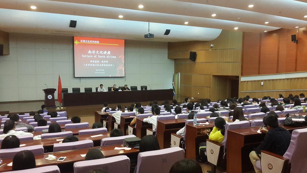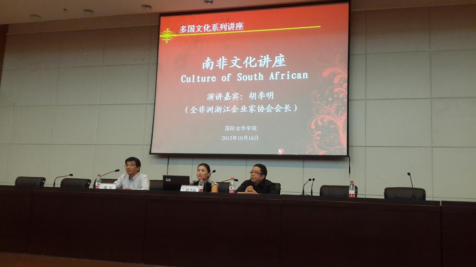 客座教授,全非洲浙江企业家协会会长、南非胡氏集团董事长、中国人民政治协商会议温州市委员会海外委员、浙江省政协港澳台侨委员会特邀委员、中央统战部中非商会常务理事胡李明先生来校与大学生分享南非文化之旅。院长严晓鹏,副院长陈军全程参与了此次讲座。