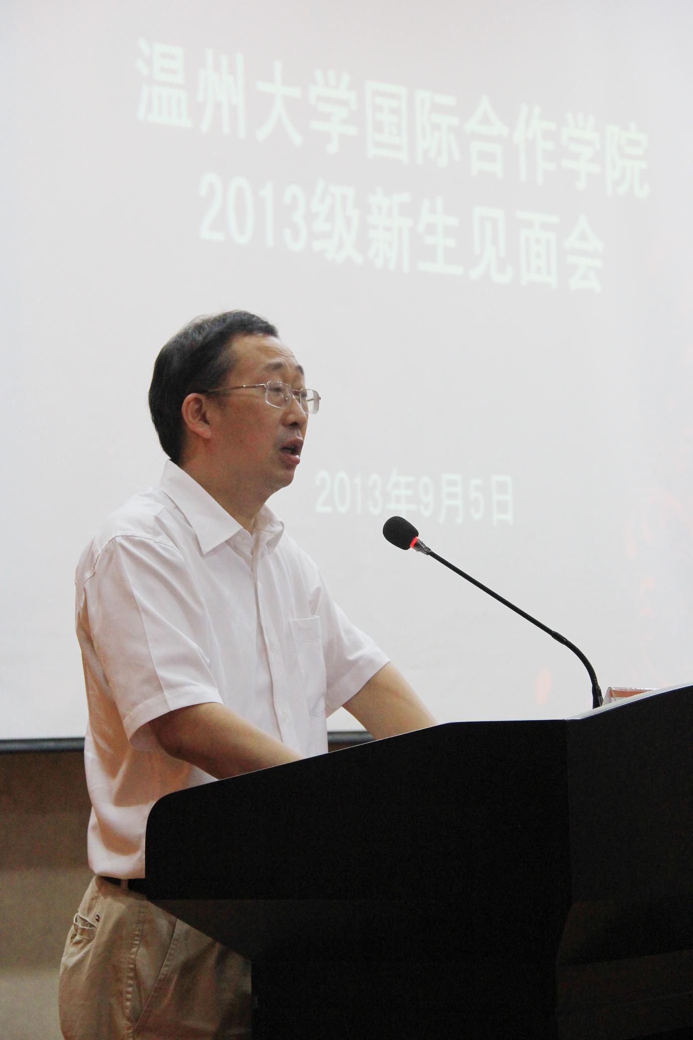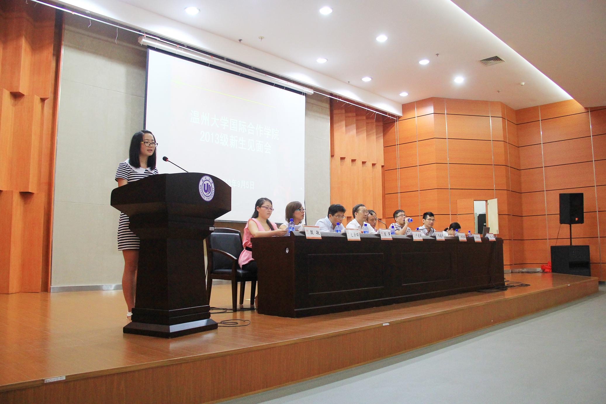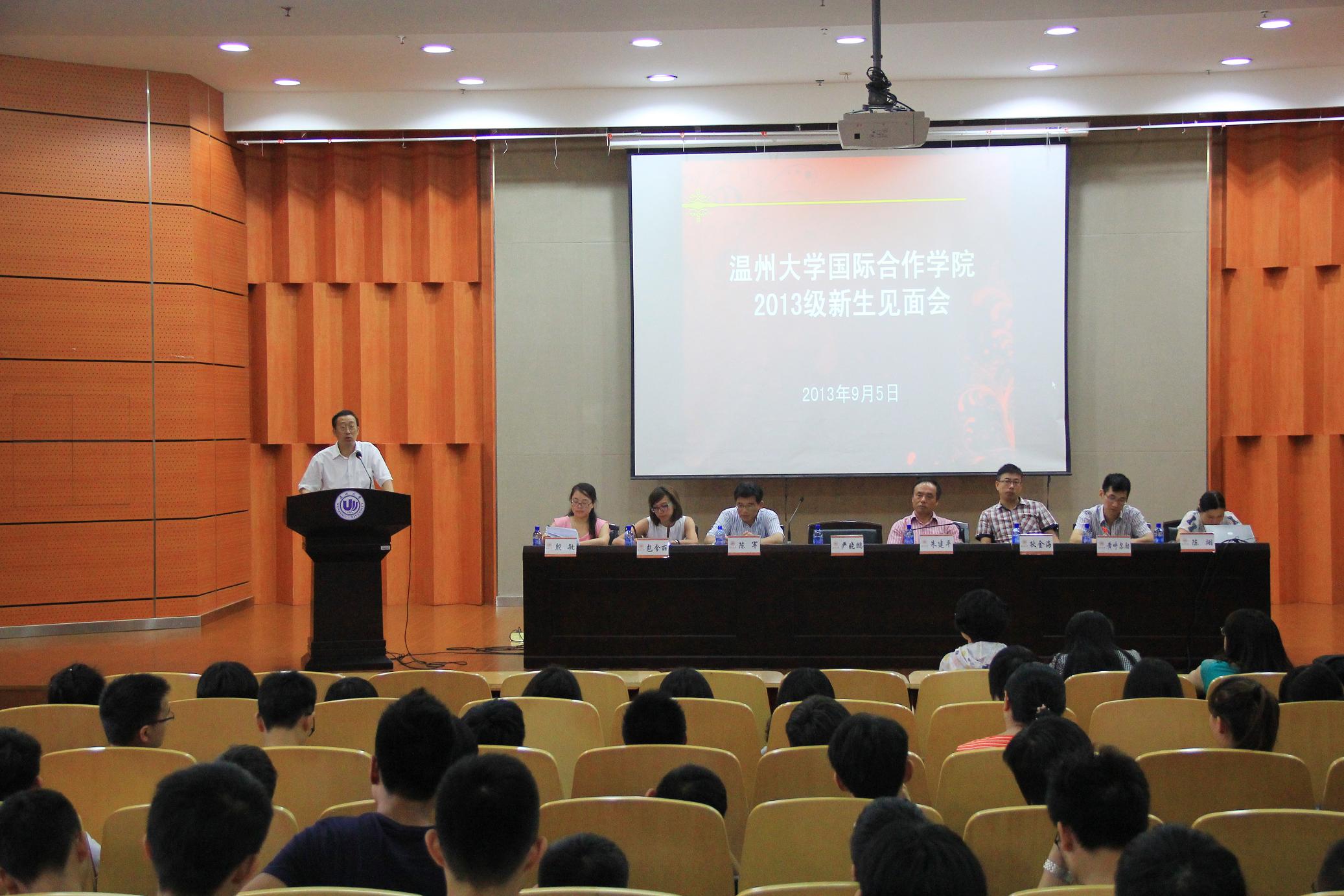 2013级新生见面会在南校区岩松堂雁山厅举行。出席见面会的有学院院长严晓鹏、党总支书记朱建平、副院长陈军、院长助理狄金海,学院各科室负责人以及辅导员、新生班主任和老生代表等。国际合作学院今年共有新生160余名,全体新生悉数按时到会。