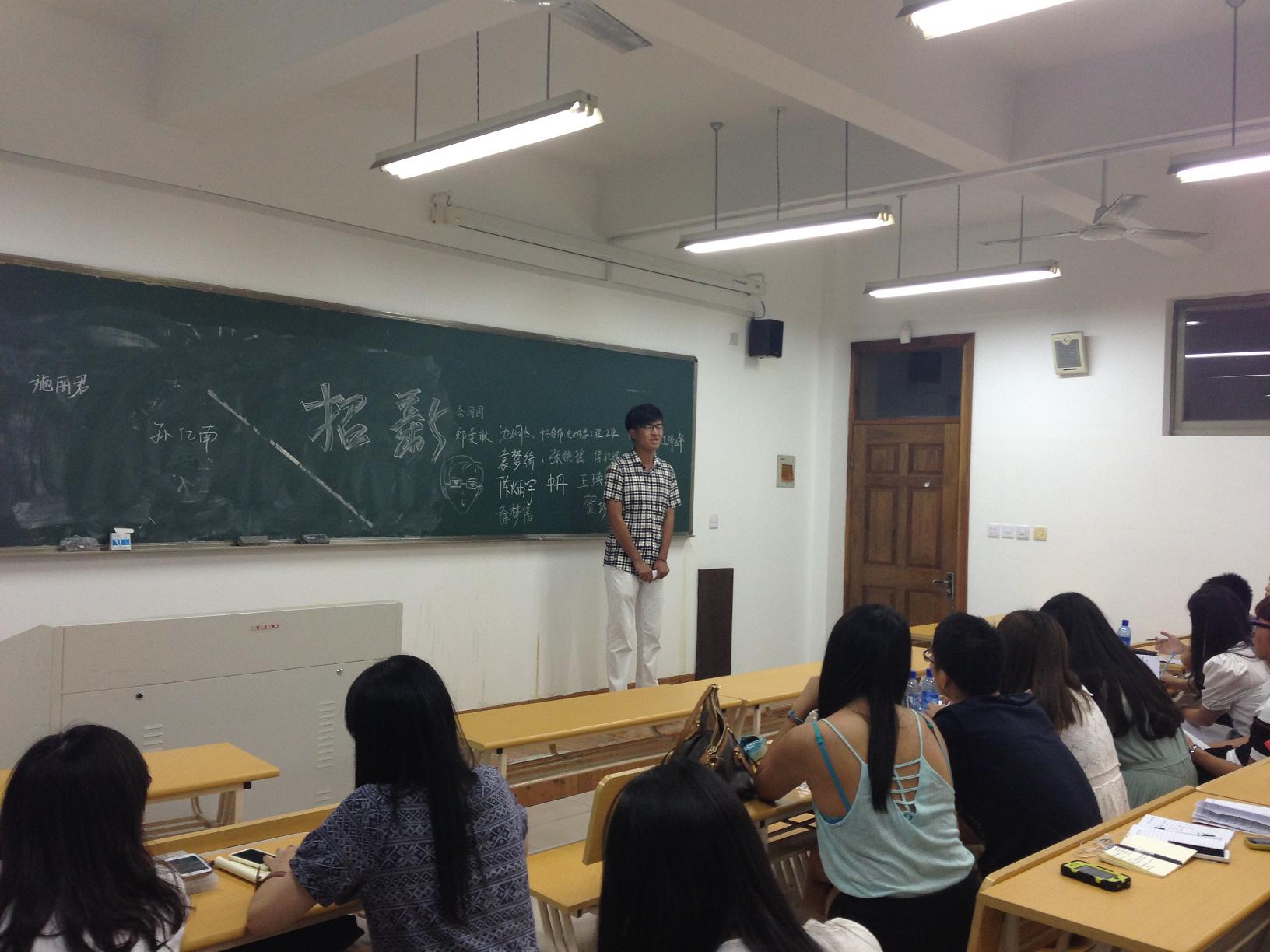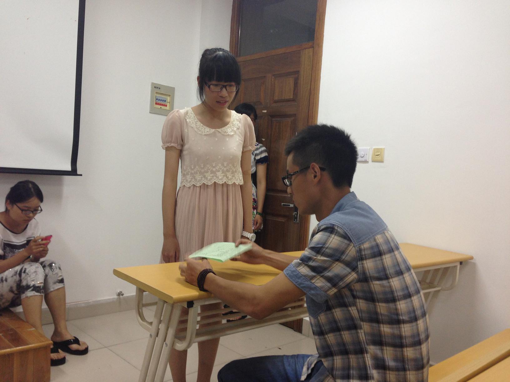 招新面试工作共分为三轮,第一轮是自我介绍,同学们走上讲台简明清晰地介绍自己的学习生活经历和自身优缺点。第二轮是能力素质考核,侧重对同学们沟通、协调能力的考核,参与面试的同学被随机分组,在现场抽签得到题目,在规定的十几分钟内完成一场短剧编排,随后进行成果展示。评委们表示,设置这样的考核方式,主要是希望同学们在较为活跃的氛围下展示自己,结交朋友,并借此考验同学们的应急能力和合作能力。最后进行的第三轮是岗位适应性考核,各部门各出奇招来考察应试者能否胜任本部门工作。如宣传部让应试者撰写微博并配上插图;文娱部更是别出心裁,以搜集新生才艺的方式来考察准干事们;组织部则要求进入复试的新生现场完成活动策划书。在面试过程中,针对台下评委的提问,同学们反应敏捷,层次明了,偶有紧张也能及时调整,不时赢得评委们的称赞。经过三轮的选拔,此次555电影