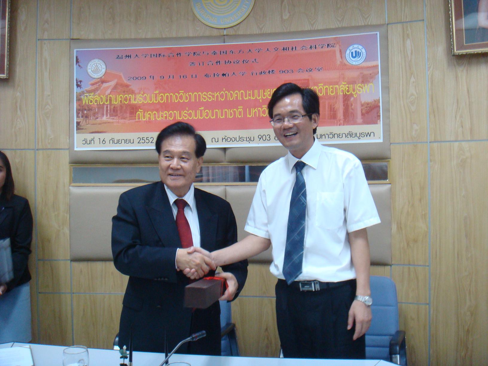 图为2009年9月,蔡袁强校长与时任东方大学校长Suchart Upatham签署《555电影