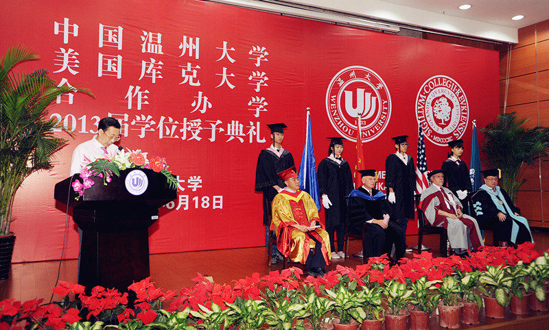 副校长薛伟博士、库克大学董事长习克先生(Mr. Robert Schick)、库克大学校长贺睿拉博士(Dr. Jorge L. Diaz-Herrera)、库克大学中国总校区校长黄天中博士(Dr. Michael Hwang)手中接过了美国库克大学管理学学士学位证书,这是他们终生难忘的一天。