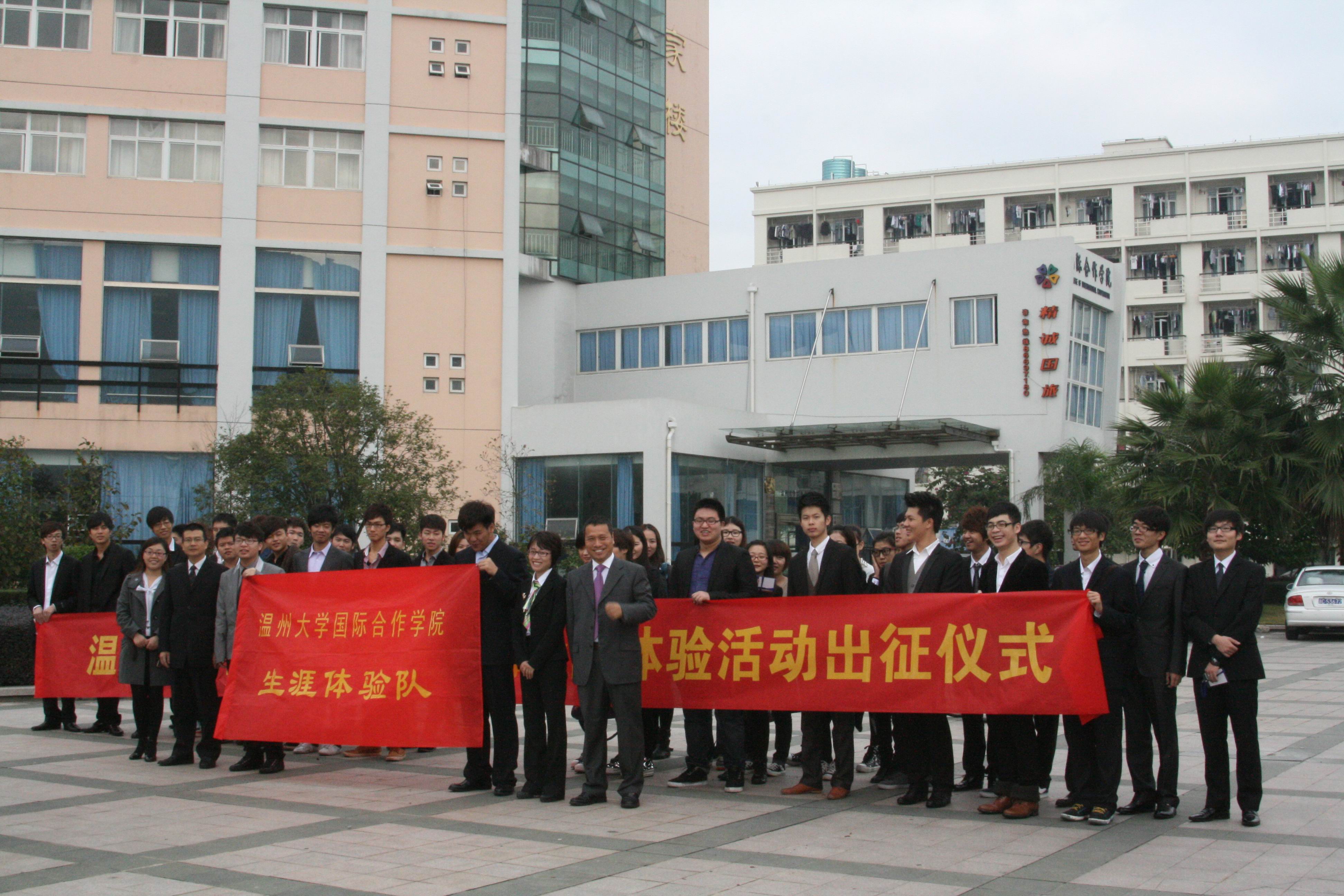 2011年11月29日上午8:00,国际合作学院“上海金融银行专题体验”出征仪式在茶山南校区专家楼一楼举行。来自国际经济与贸易专业的40位同学正装列队参加了本次出征仪式。他们将在4位老师的带领下奔赴国际金融之都——上海,参观访问上海渣打银行、上海期货交易所、上海股票交易所、上海银行博物馆以及上海大众汽车有限公司。