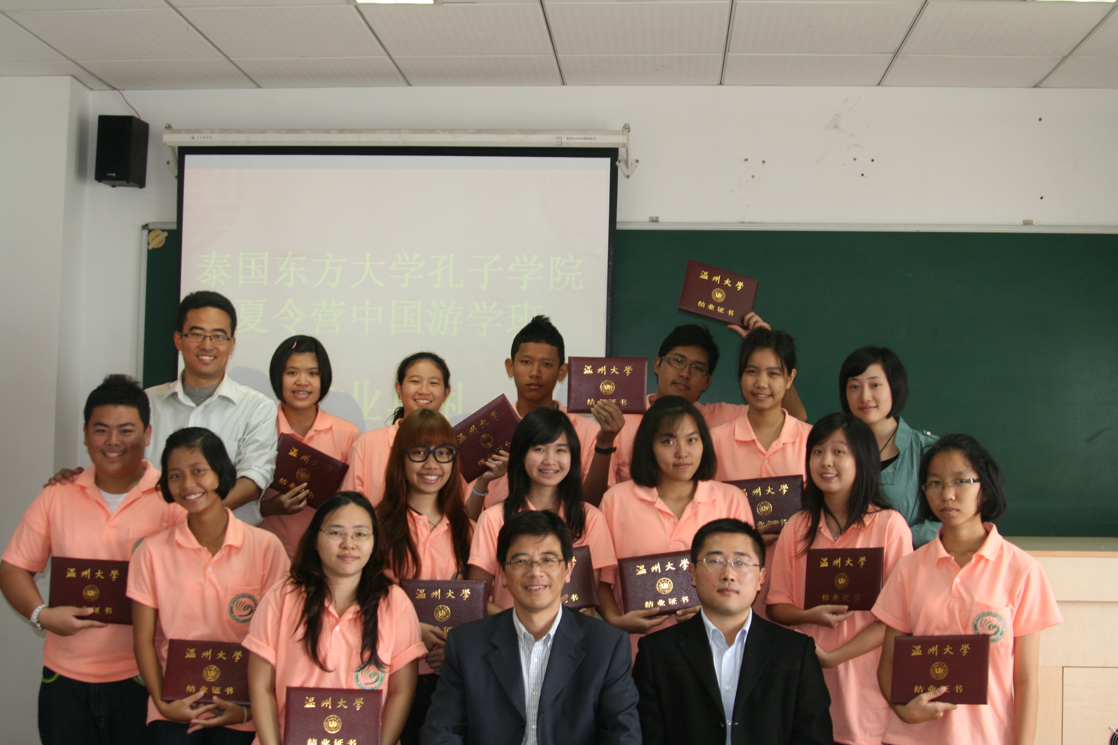 2011年5月7日上午,泰国东方大学孔子学院夏令营游学班结业典礼在北校信息楼A711举行。国际合作学院副院长陈军和泰国东方大学孔子学院中方院长缪立懿等出席。