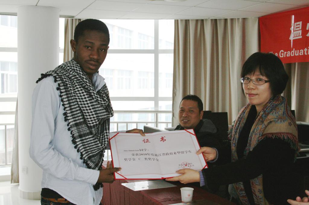 本届留学生形成了良好的学风,在HSK考试中,有4位同学获得新HSK考试4级证书;5位留学生获得“浙江省政府来华留学生”奖学金,2位留学生获得孔子学院奖学金。