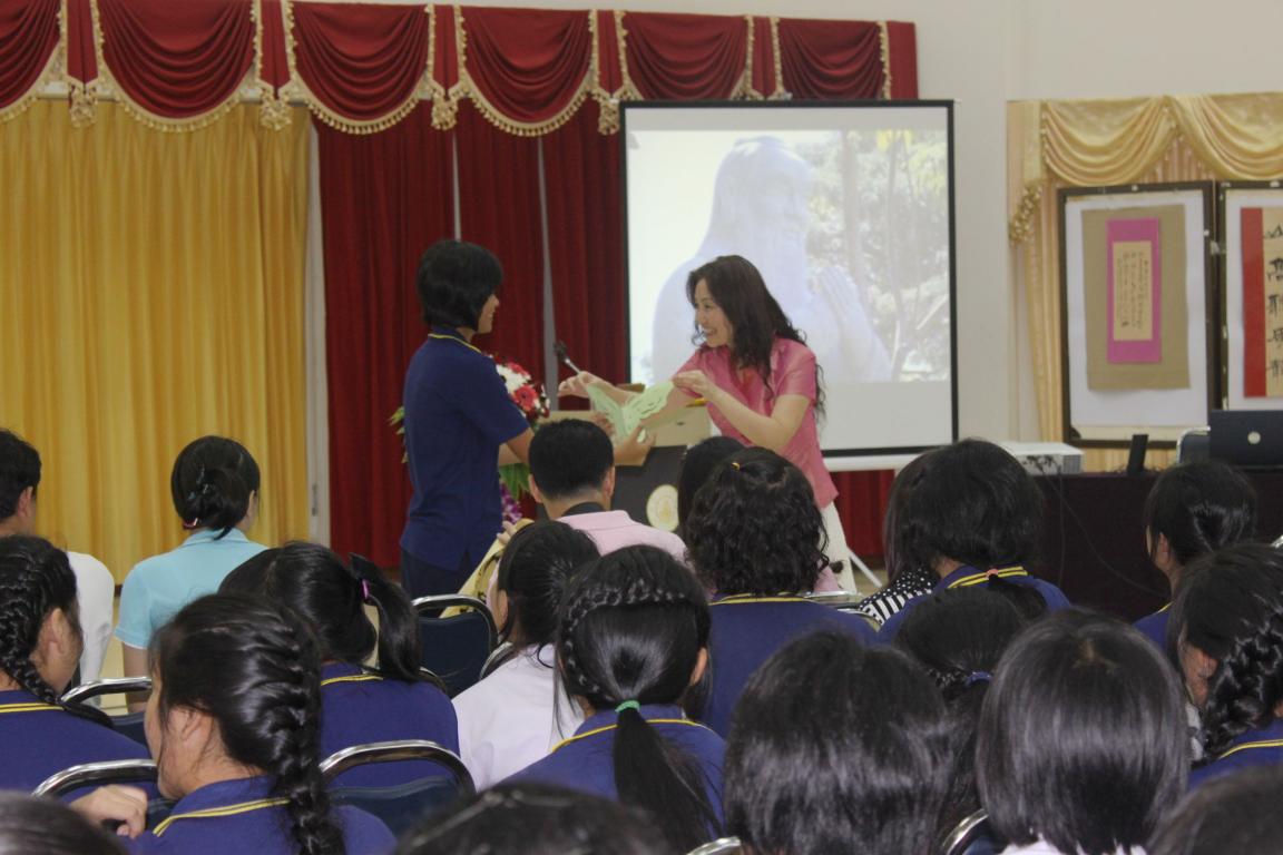 泰方院长符丽珠博士向学生们介绍了孔院设立一年来的发展情况,中方院长丁力博士介绍了中秋佳节的传说和习俗,555电影