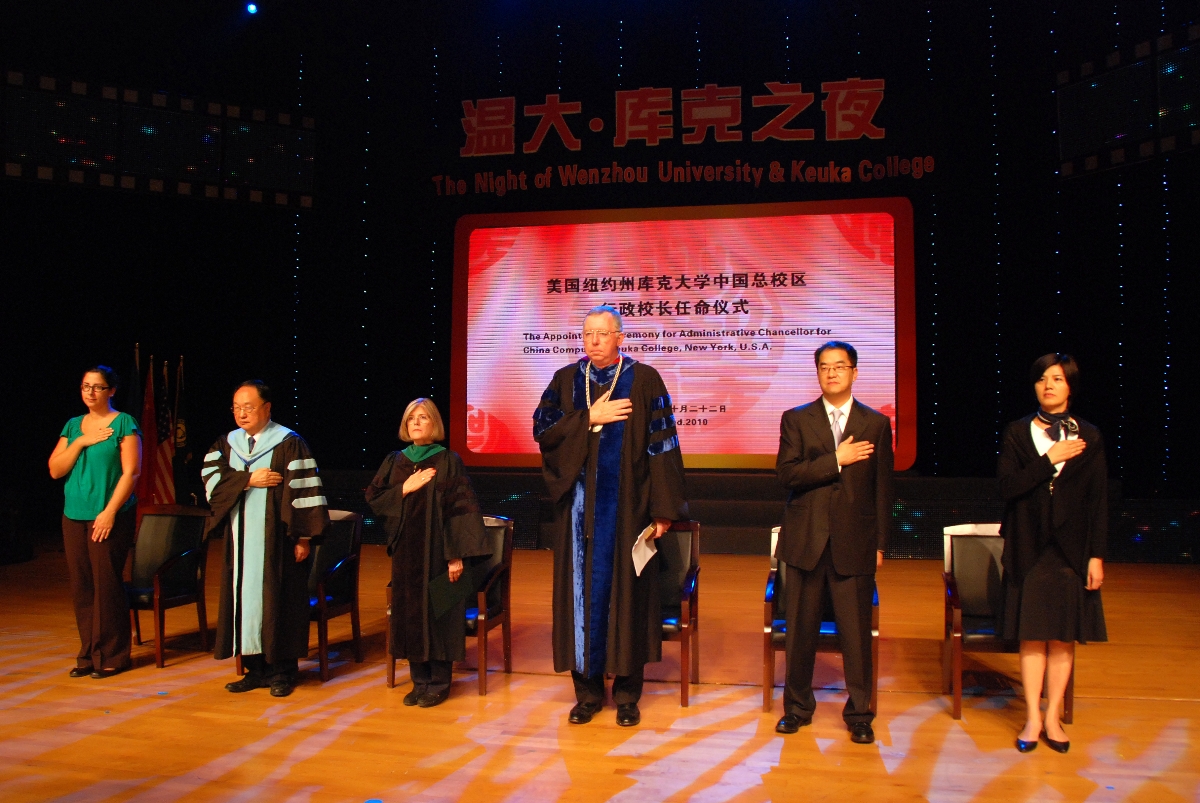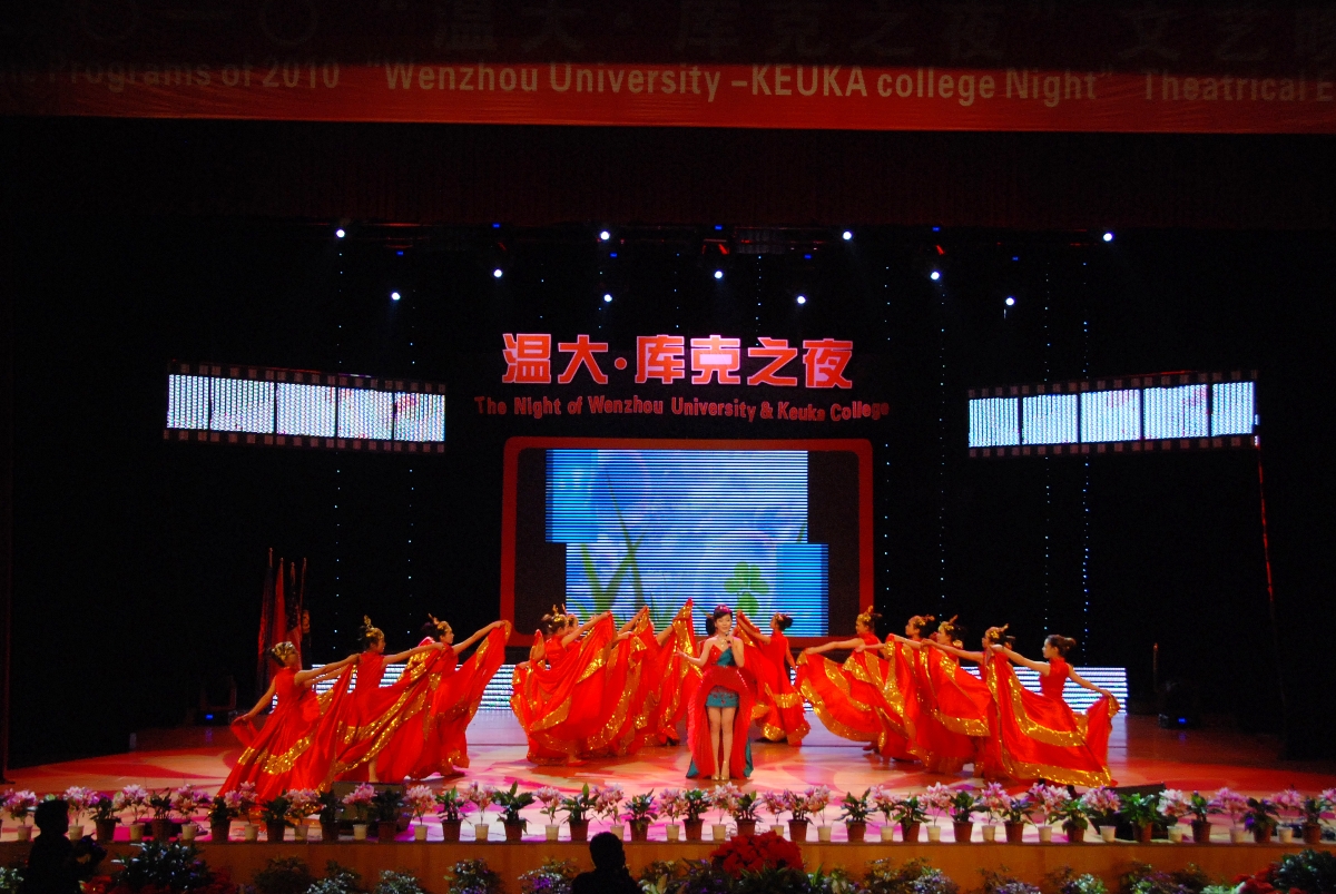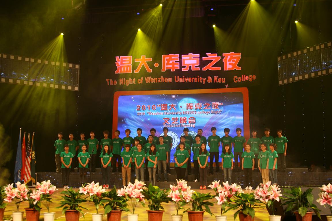 与美国库克大学签订合作协议。一届又一届的毕业生们现在广布世界各地,在通过本次晚会的视频,我们看到了他们今天的成就。与此同时,他们更是怀着一颗感恩的心,祝福温大,祝福库克,预祝两项合作项目越办越好。结束节目男生双重唱《怒放的生命》和群舞《情路满天》,寓意中美库克项目越办越好,两校友谊天长地久。雄关漫道真如铁,而今迈步从头越,为了更辉煌的明天,我们又将朝向胜利出发!