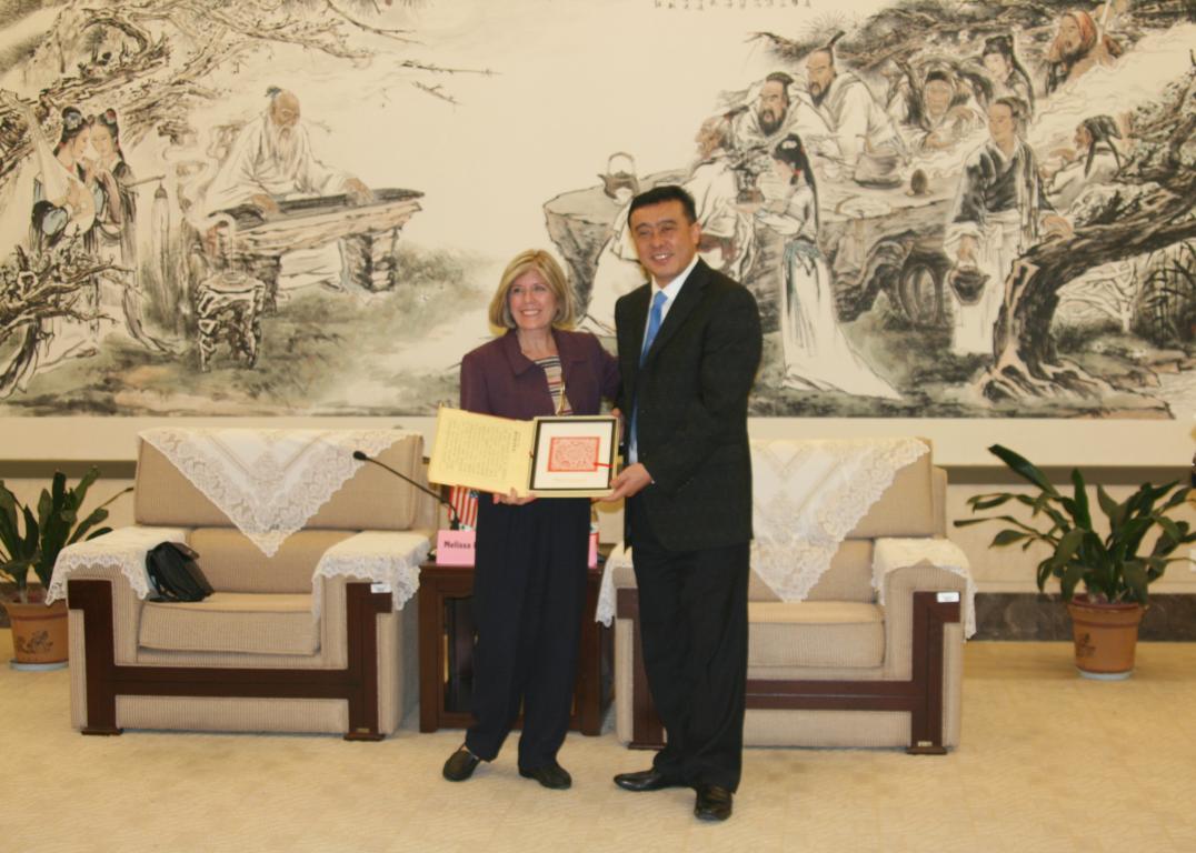 严晓鹏院长、方建敏书记、办公室主任包含丽、教学科长张雪萍热情会见客人。