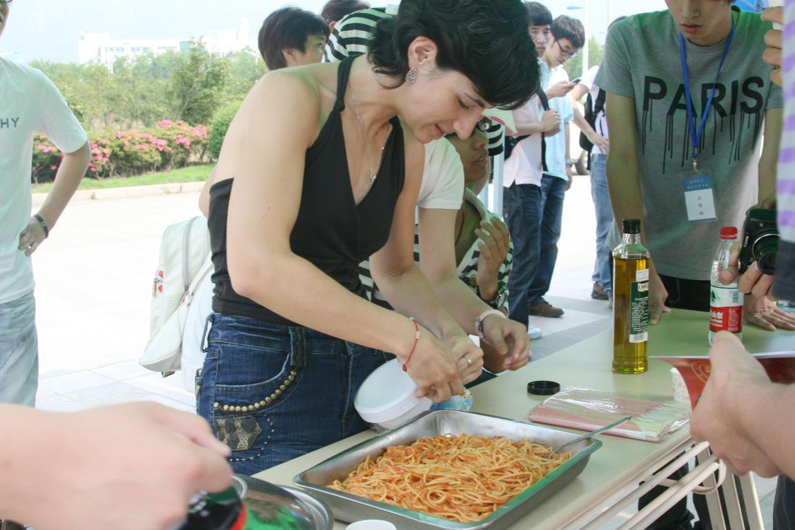 伴随着阵阵喝彩声,一阵香味扑鼻而来,在泰国展区来自泰国的留学生烹煮了四道代表泰国风味的菜品供参观者品尝。泰国料理果然风味独特,口味偏酸辣,色彩鲜艳,引人食指大动。极具泰国特色的烹饪手法与配料令大家仅通过舌尖便品味到了浓厚的泰国风情。美丽的民间手工艺品,美味的苹果酒以及火红的花朵,无不体现着西班牙的热情大方。而意大利展区当然少不了诱人的意大利面。更有来自南非的留学生特意制作了精美的视频,令参观者仿佛身临其境般,能够更加具像的对该国有所了解。各国留学生精心准备,带我们走进别具一格的异国文化长廊,增进彼此之间的了解,开拓了一定的国际视野,增进了各国间的友好交流与友谊。