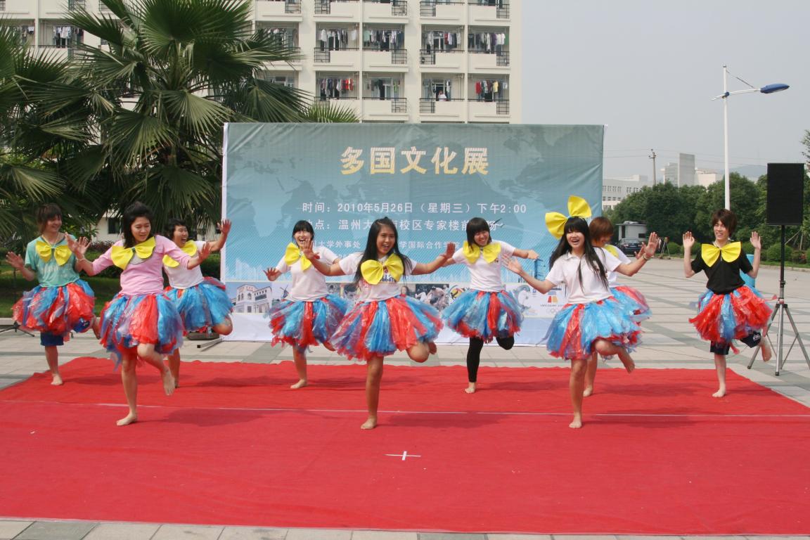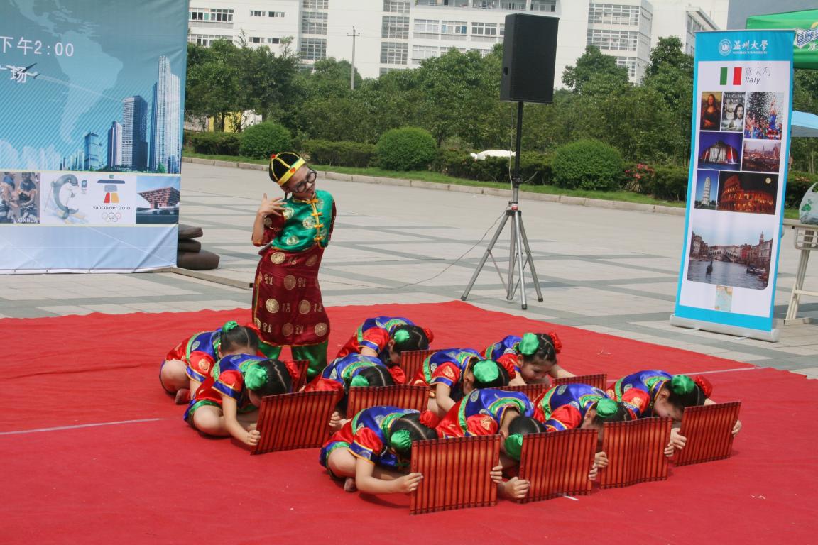 文化展上,首先给大家带来的是各国文艺表演。来自美国的外教老师带来了吉他演奏,简单、明快、悠扬的美国乡村音乐让人们沉醉其中。泰国和日本留学生表演的泰国歌舞更是掀起了全场热潮。同时,还有泰拳以及来自瓯海区实验小学的小朋友带来的表演。节目不仅有浓厚的本国特色,更将中国文化融入其中,体现了文化交融的和谐美。