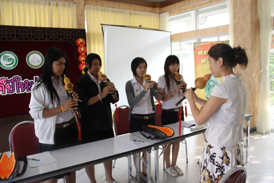 2010年1月11日,泰国东方大学孔子学院民乐班正式开课,555电影 国际合作学院张丽丽老师担任第一期葫芦丝演奏班的主讲教师,多名学员参加了这期葫芦丝班的学习。