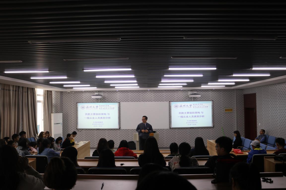 2018年第二期航空学术沙龙于10月17日下午在北校区3号楼201报告厅隆重举行,由本学院航空管理教研室牛诗渊副教授兼专业负责人主讲,航空管理专业的教师与学生全体参加讲座聆听。