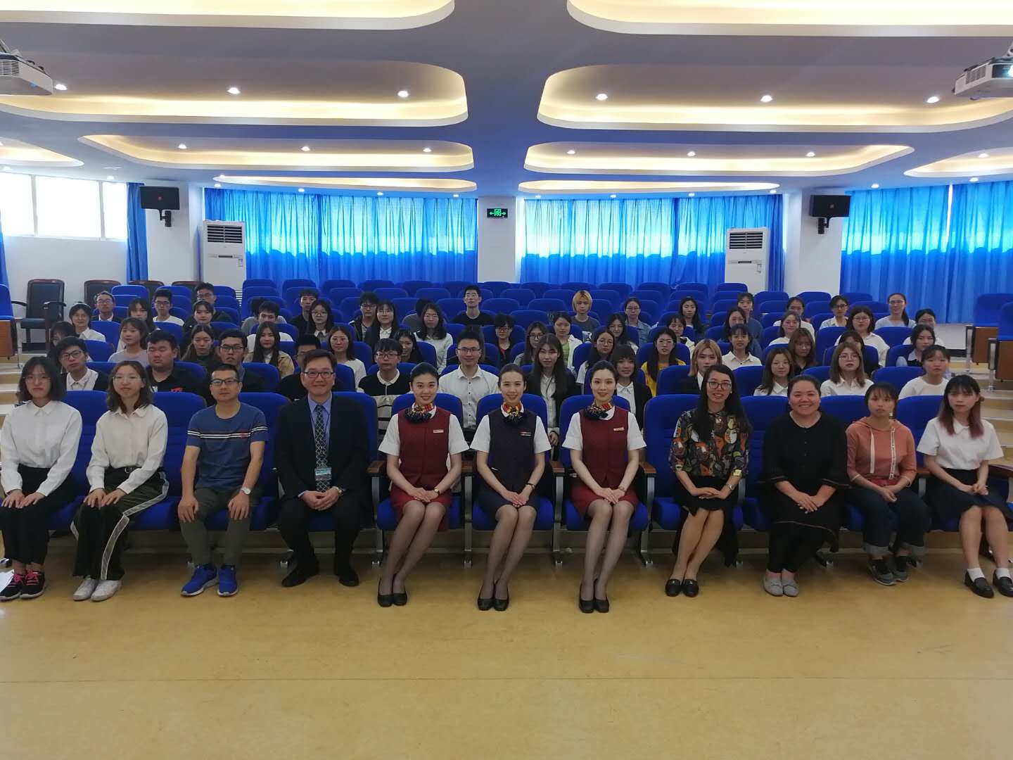 航空管理教研室主办的”航空学术沙龙讲座——空中服务礼仪”于5月29日下午,在北校区3号楼203报告厅举行,中国国际航空股份有限公司温州分公司特别协助555电影