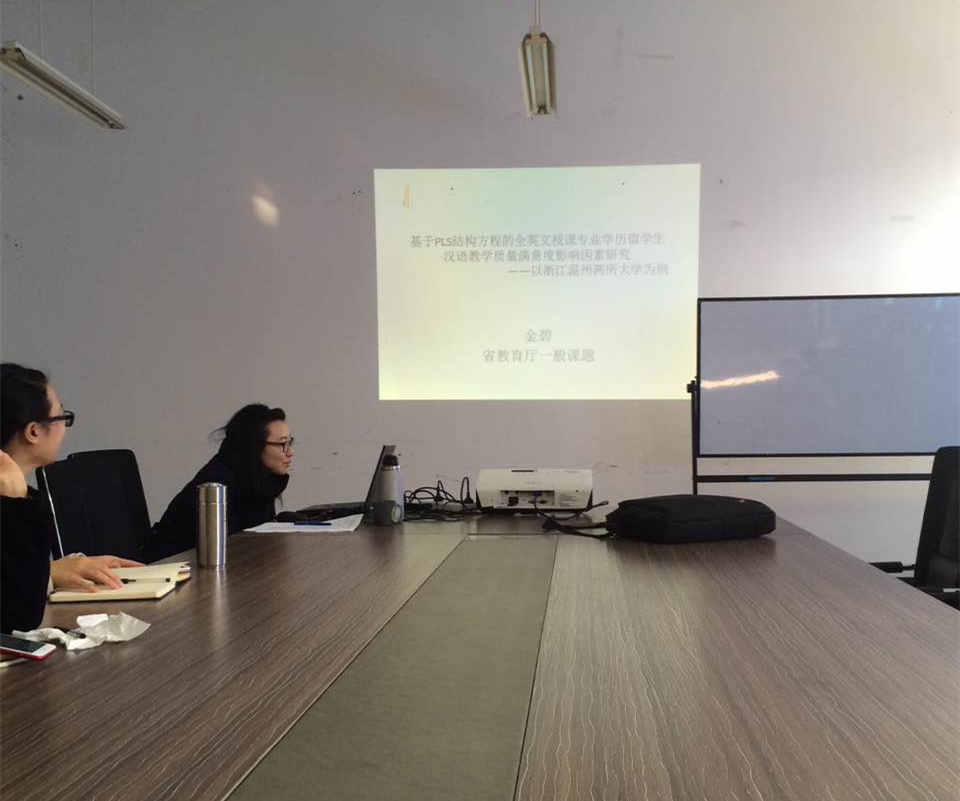 汉语国际推广教研室在三号楼311会议室开展了本学期第三次学术沙龙,题为全英文授课专业学历留学生汉语教学质量满意度影响因素研究。此次沙龙由教研室主任徐丽丽老师主持,金碧老师主讲,学院副院长包含丽老师、教研室各位老师和浙江师范大学四位实习教师共同参加。
