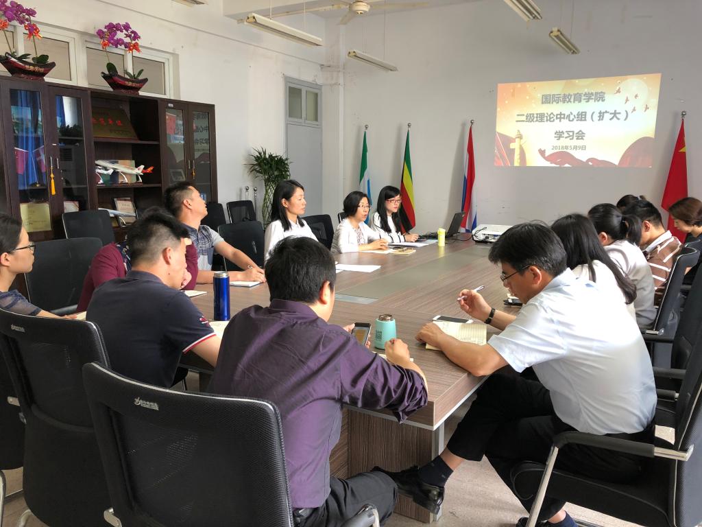 院长兼党总支书记叶苗首先组织与会人员学习了习近平总书记在北京大学师生座谈会上的讲话原文,特别采取了所有人员轮流诵读的方式,以加深对习近平总书记讲话的记忆和理解。随后,与会人员展开热烈讨论,大家纷纷结合国际教育工作的特点,发表了自己的看法和领会。党总支副书记陈文远指出,习近平总书记的讲话指出培养社会主义建设者和接班人要做好三项基础性工作,第二点就是要建设高素质的教师队伍,专业教师、辅导员、班主任、教辅人员、管理人员都要积极参与其中,全程育人、全员育人、全方位育人的“三全”育人工作体系一定要贯穿培养的全过程。副院长陈军强调在国际学生教育过程中,我们教师代表了国家形象,必须抓好师德师风建设,把教书育人和自我修养结合起来,做到以德立身、以德立学、以德施教,讲好中国故事,传播好中国文化。各位班主任也结合习总书记提出的广大青年的希望和中外学生心理、学习习惯等工作遇到的实际问题提出了自己的意见和建议。