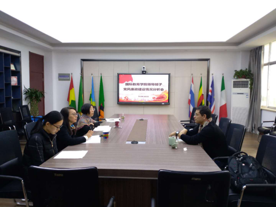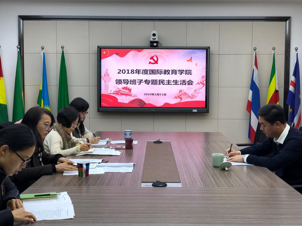 会议第一议程为院领导班子专题民主生活会。领导班子成员以贯彻党的十九大精神为主题,结合习近平新时代中国特色社会主义思想,围绕“四个意识”进行个人思想、工作方面的总结,找差距、补短板,提出相应的解决思路和整改措施。在相互批评的过程中,学院班子成员之间都提出了工作中存在的问题和不足,并给予相应的意见和建议。钱强对本次民主生活会进行总结,肯定了学院2018年度的工作成果,并对学院领导班子成员自我剖析表示满意与认可。同时,钱强也对学院下一年的工作提出要求,表示要进一步加强政治理论学习,紧抓意识形态工作,不断加强班子建设、思政队伍建设和管理队伍建设。要加强招生管理,优化国别、性别,加强语言生和交换生培养。教学上要进一步优化通识教育课程体系,提高教学质量,突出学院特色,加强对个专业学院的监管,细化各专业培养方案。