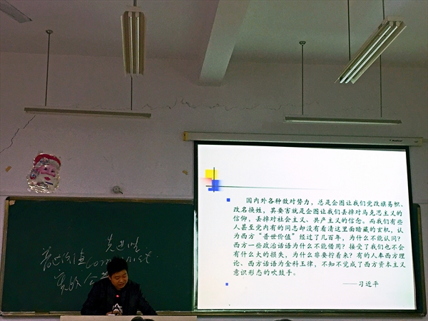 和生环学院联合邀请马克思主义学院副教授蒯正明老师在南校区11A201为全体教职工做题为“推进全面从严治党,依规治党——学习十八届六中全会的几点思考”的专题报告会。两院共近百余名教职工参加了学习会。