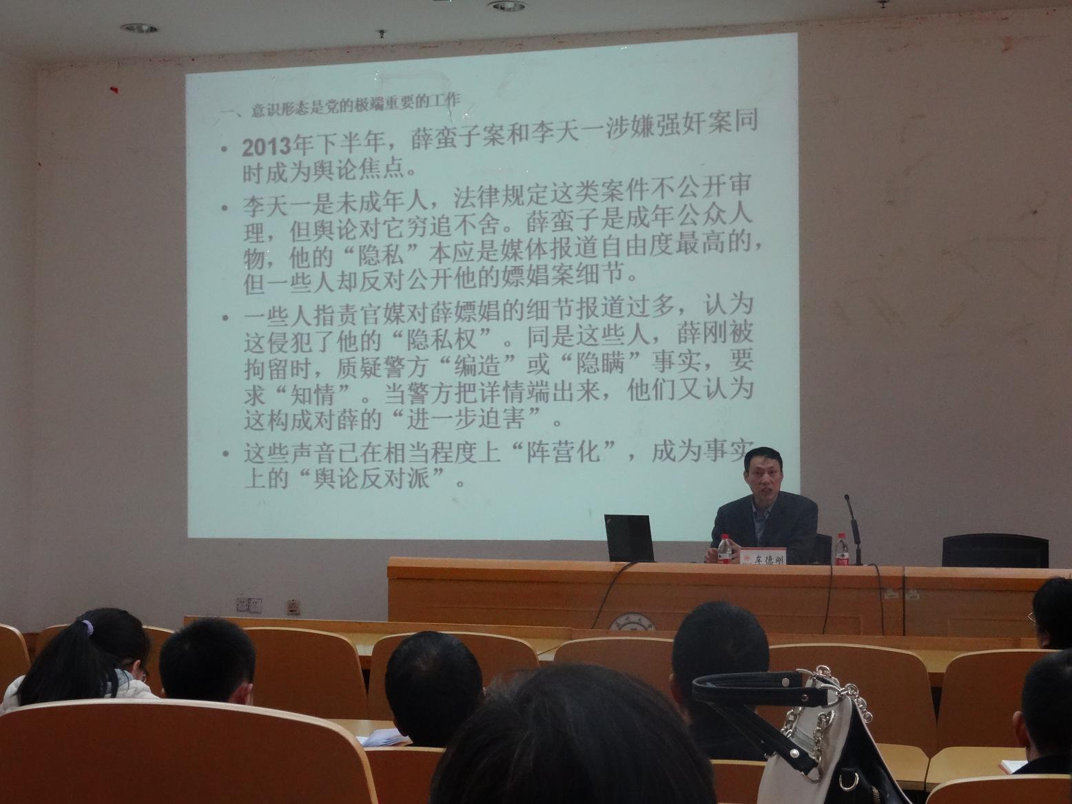 联合举办面向教工的形势政策学习会,邀请校党委副书记牟德刚作《高度重视意识形态工作——学习习近平总书记系列重要讲话》的讲座。