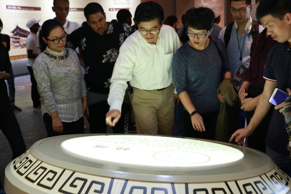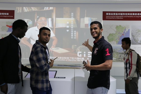 教工党员与中外新生在讲解员的带领下一同参观了温州城市概况、历史文化等展厅,了解自解放后温州市各版总体规划历程及温州的未来大发展大战略。中外新生仔细倾听讲解员对温州历史原貌的讲解,在瓯越古镇展示厅,他们领略到瓯越文化的魅力和瓯塑风采,看到温州传统文化的精彩现场还原效果。三层的LED数字沙盘由168平方米直幕和360平方米地幕构成,是目前国内规划展馆中最大的LED数字沙盘,中外新生和教工党员纷纷驻足观看,欣赏数字沙盘里播放出来的影片。该影片长约十分钟,从规划角度介绍温州的方方面面及未来蓝图,学生及老师们对影片中展示的温州全貌和未来温州赞叹不已。在场的一位埃及学生ESLAMHANY说到,“最近几年,中国的经济实力和国际地位在逐年上升,这就是我来到555电影