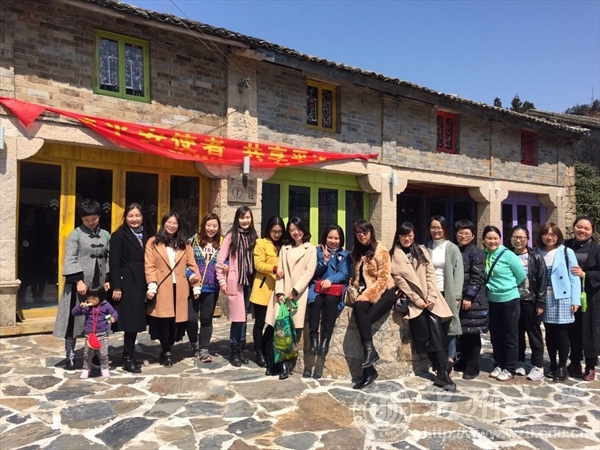 暖暖春日,漫步在空气清新的盘云谷,女教工们顿时觉得神清气爽,怡然自得。“梧桐”、“遇见”、“水和居”、“ 搴•水一方”,原始古朴的石屋外墙,内部浓浓文化氛围的一幢幢精致民宿,让人流连忘返。穿行在古朴的村道上,阅景赏花,每个人的脸上都荡漾着醉人的笑容。