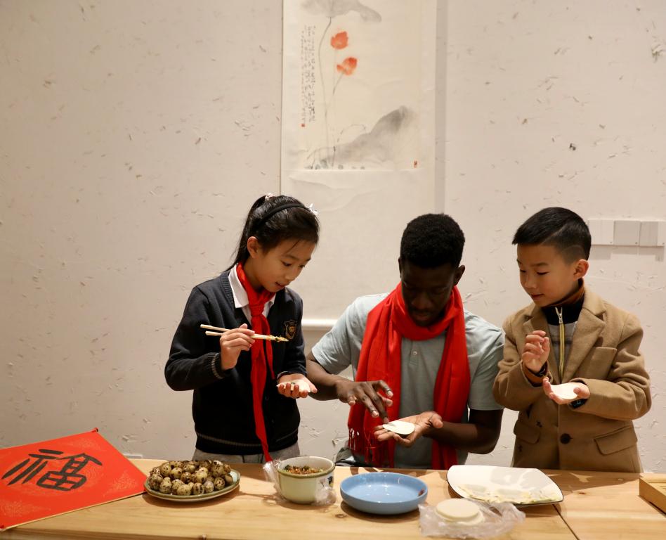 1月13日,来自加纳、坦桑尼亚、赞比亚等国家的34名国际学生在温州市新田园小学参加牵手共度中国年活动,他们与小学生的家庭一一结对共同度过富有特色的一天,体验浓浓中国年。