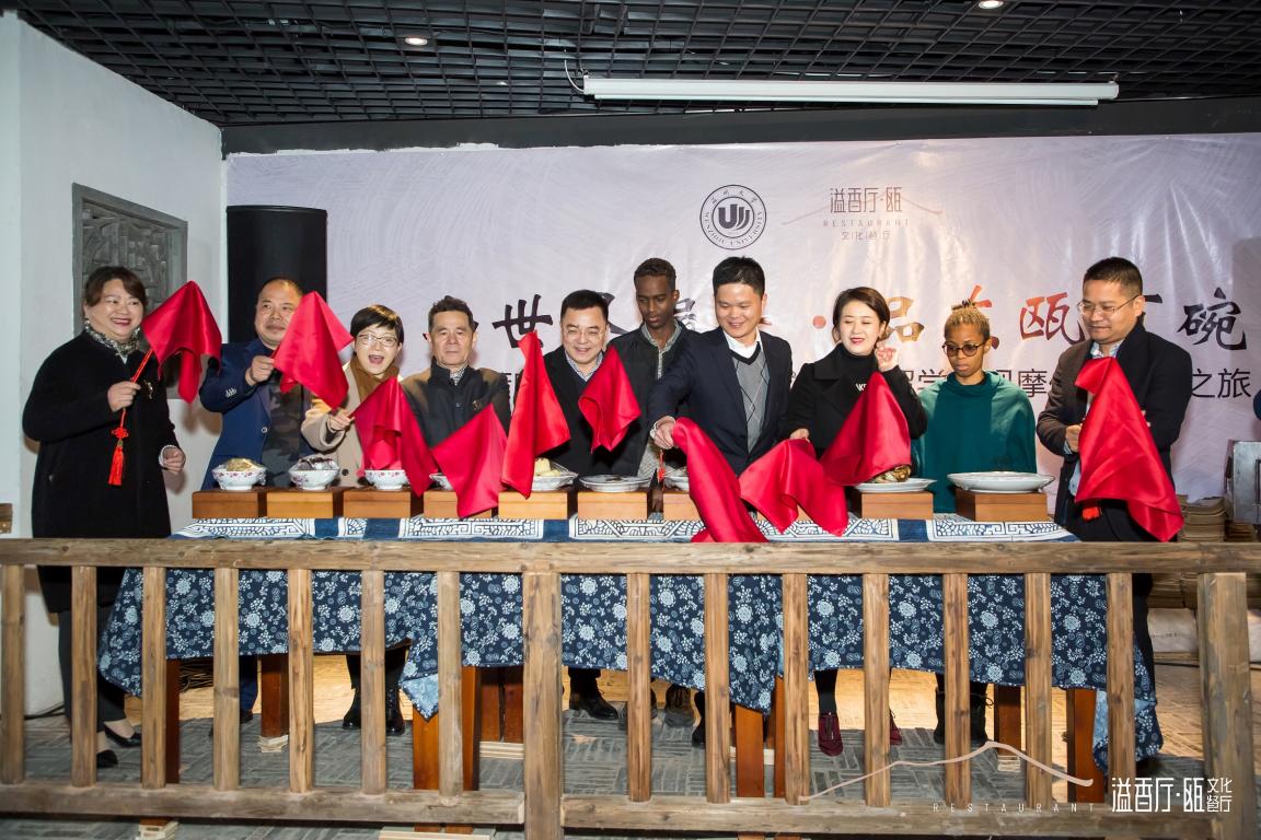 党总支书记林爱菊及两名国际学生代表共同为瓯味十碗揭开“红盖头”,林爱菊书记还与溢香厅瓯文化餐厅负责人共同签署协议,向对方授“555电影