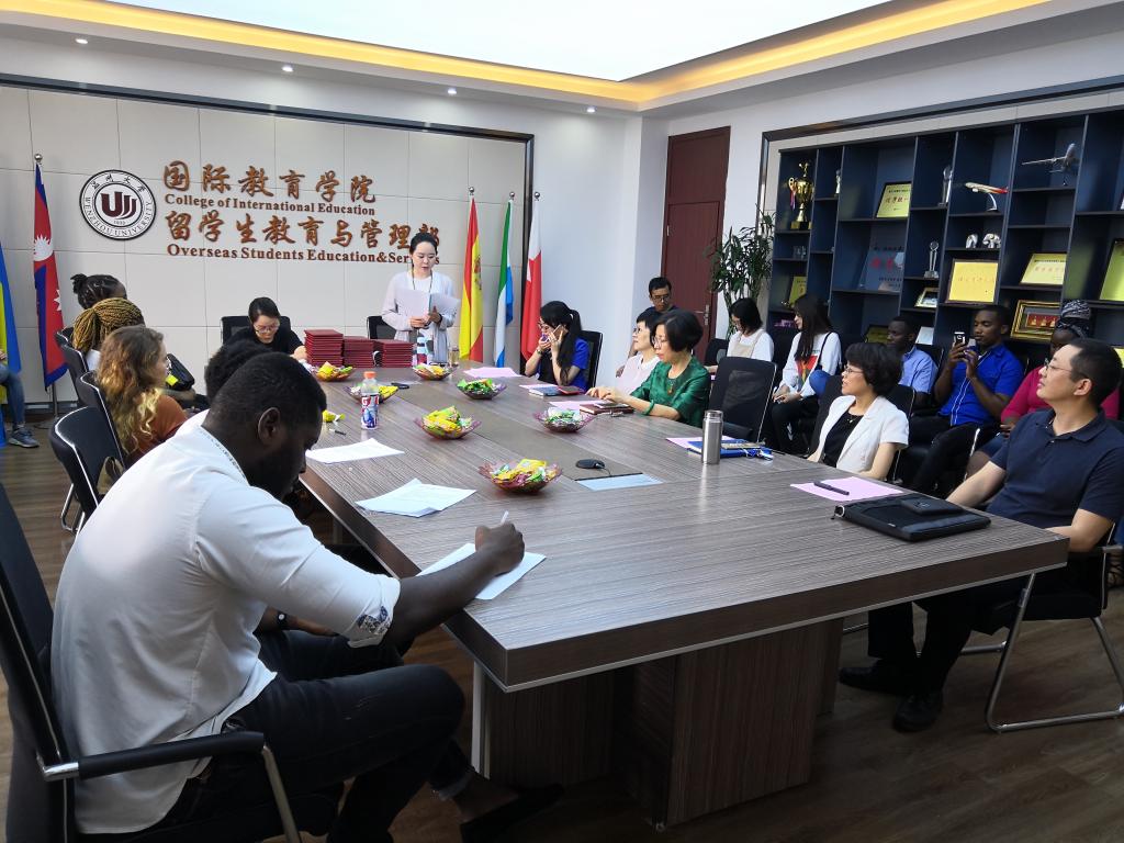 院长叶苗、党总支书记林爱菊、党总支副书记张雪萍、副院长熊勇、副院长吴之欧,相关科室负责人、辅导员、语言生和交换生参加会议。会议由汉语国际推广教研室主任徐丽丽老师主持。