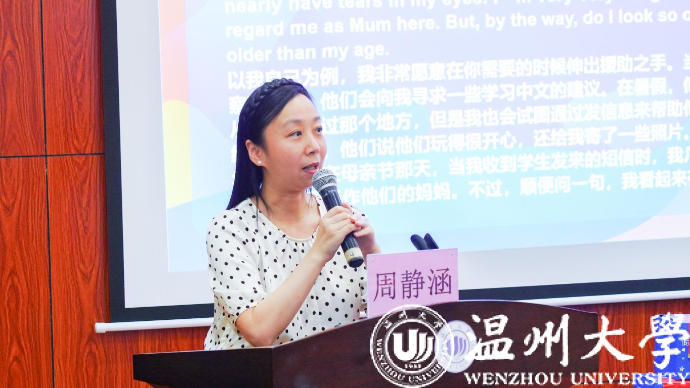 教师代表周静涵老师以自己的亲身经历为例,说:“我们永远是你们坚强的后盾。”她希望学生不耻下问,希望他们尊重不同文化,学会从不同的角度去看世界,努力成为世界发展的栋梁之材。