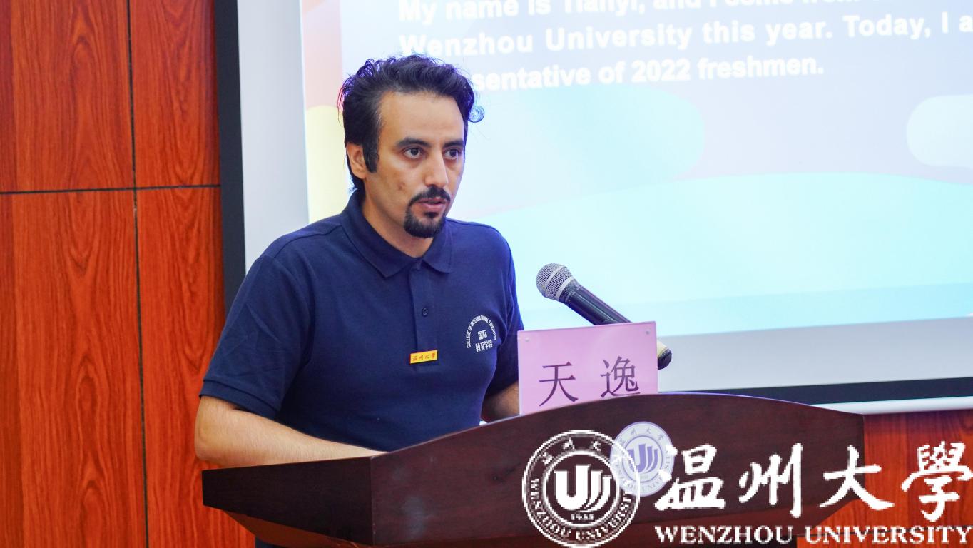 来自塔吉克斯坦的汉语国际教育硕士生祝一龙同学已经在这里留学一年,他分享了自己在中国学习和生活的感受,寄语新生从一点一滴做起去实现自己的目标。来自也门的机械工程专业新生天逸同学也用中文发言,讲述了自己选择温大的缘由,并感谢学校给予他的机会,希望中国和他的祖国友谊长存。