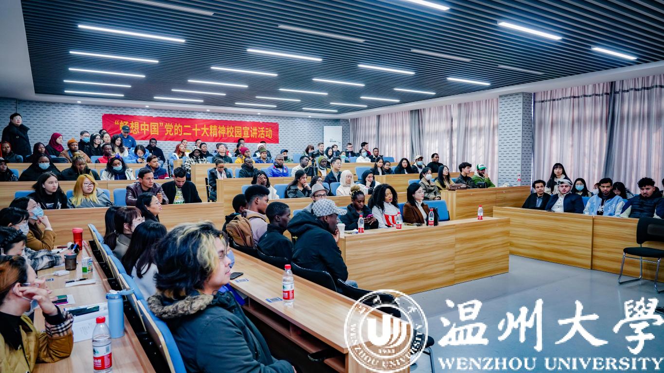 “畅想中国”党的二十大精神校园宣讲团由浙江省教育厅、浙江省高等学校国际学生教育教学指导委员会主办,是省高等学校留学生国情教育的重要组成部分。此次宣讲活动旨在帮助555电影