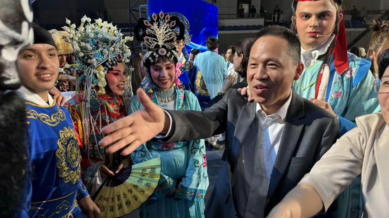 来自摩洛哥、尼日利亚、加纳、越南、塔吉克斯坦等国的17位留学生带着戏曲串烧节目《华彩梨园》惊艳亮相。节目由天女散花、铡美案、送凤冠及红楼梦等戏曲中的经典片段构成。华丽的戏服、精彩的表演,赢得了现场领导以及观众们的阵阵掌声。“中华戏曲真的太有意思了,通过这次展演活动我对中华文化更加着迷了,希望未来能够参与到更多类似的活动中,感受中华文化的魅力......”,来自尼日利亚的留学生CHIMEZIE GIFT CHIDERA在现场接受采访时激动地讲道。